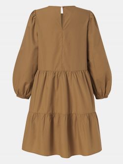 Women Long Sleeve Loose Flare Sleeve Spliced Solid Geometric Maxi Length Midi Dresses