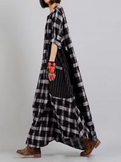 Women Solid Color Turn-down Collar Long Sleeve Maxi Shirt Dress